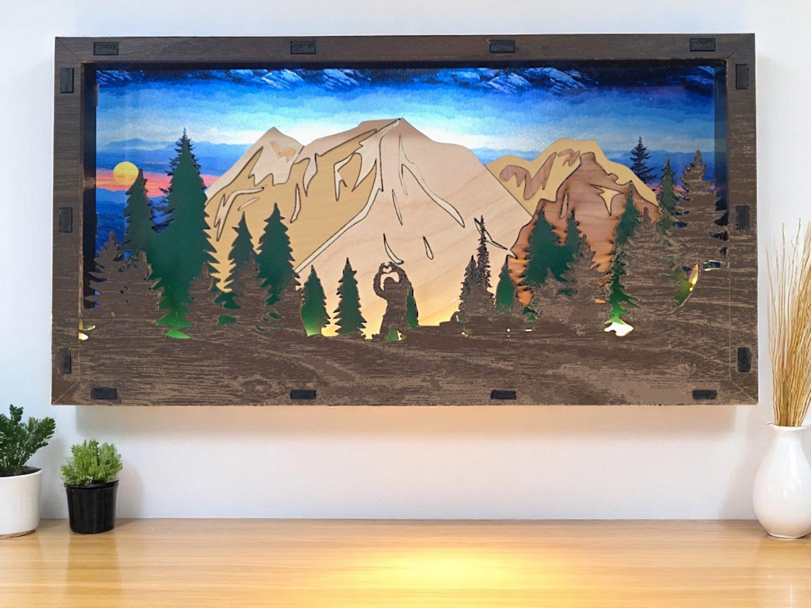 Bigfoot Keyholder SVG – Laser Cut Keyholder | Barn Quilt Style Mountains Design