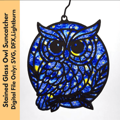 Owl Suncatcher SVG – Stained Glass Suncatcher | Laser Cut File | Boho Wall Decor